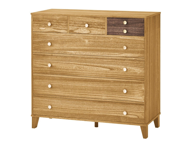 右小引出しはバイカラーで、小物の収納に便利な浅引き2杯タイプです。