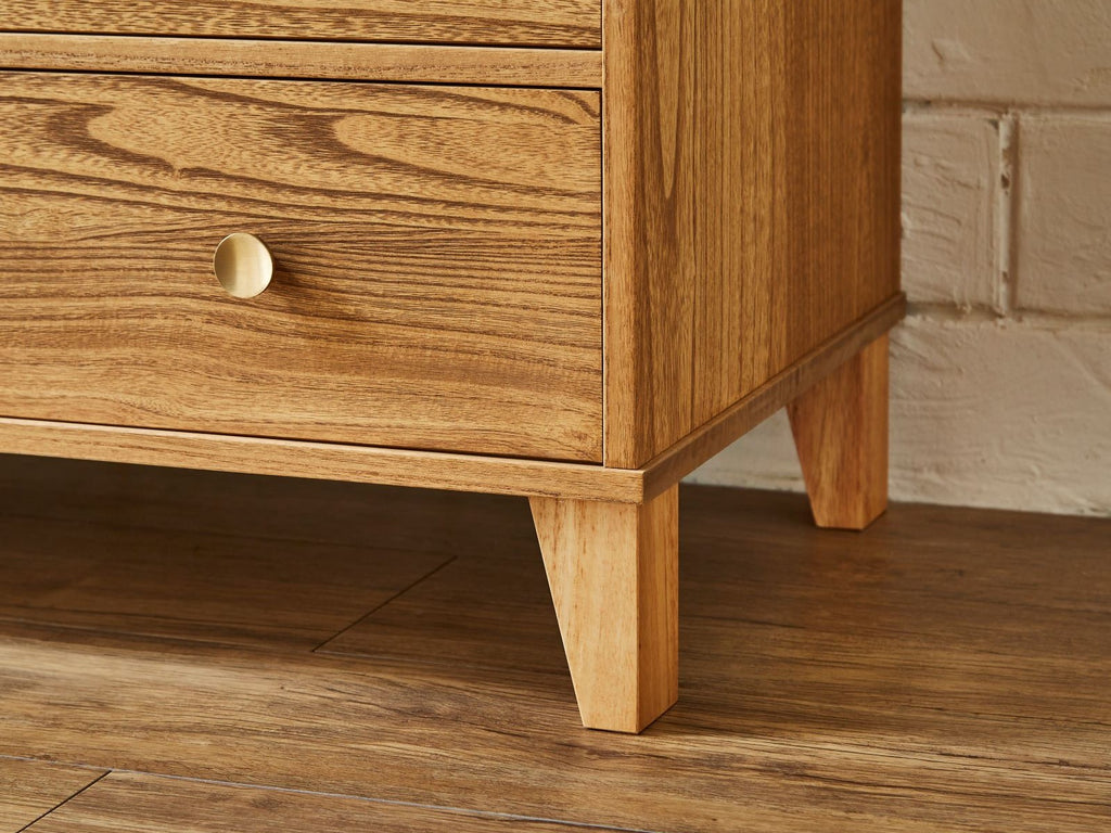 スッキリした印象の脚付き桐製チェスト。(脚部高さ10cm)